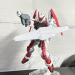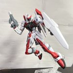 #ガンプラプチレビュー HG SEED シビリアンアストレイ DSSDカスタム 完成です✨ 可動域は普通です。色分けはセンサー、シャインレッド、ダークグレー、ライトグレー、白が足りないです。武装はビームガン、シールド、レーザートーチです❗️細身なスタイルでとてもカッコイイです‼️