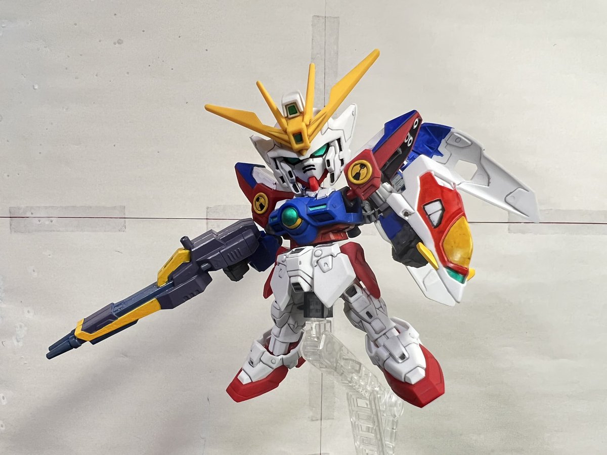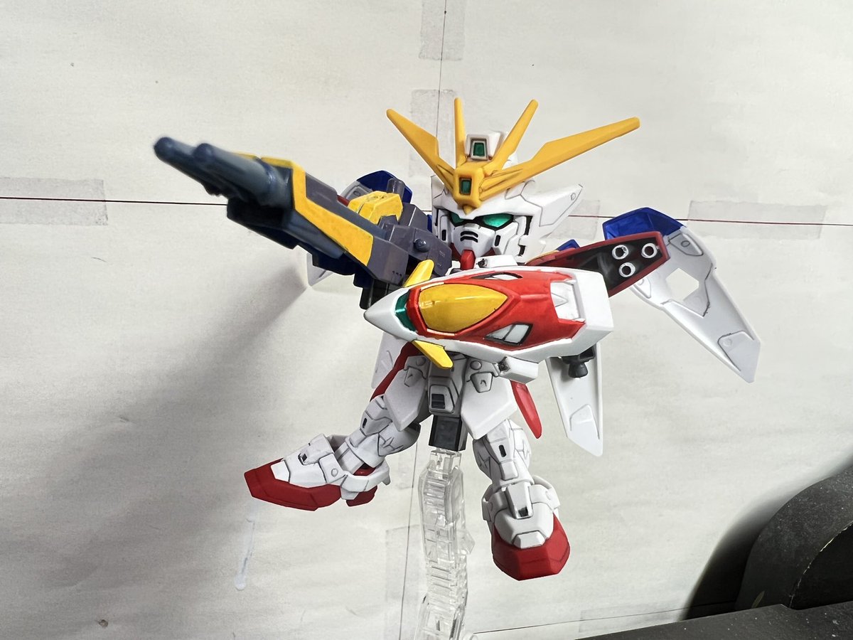#ガンプラプチレビュー SDEX ウイングガンダムゼロ 完成です✨ 可動域はSDにしてはいい方だと思います❗️色分けはセンサー、白、黄、青、赤、グレー、メカグレー、ブルーグレー、黒が足りないです。作りは簡単ですが、とにかく塗り分けが大変ですwスタイル良いので凄くカッコイイです‼️