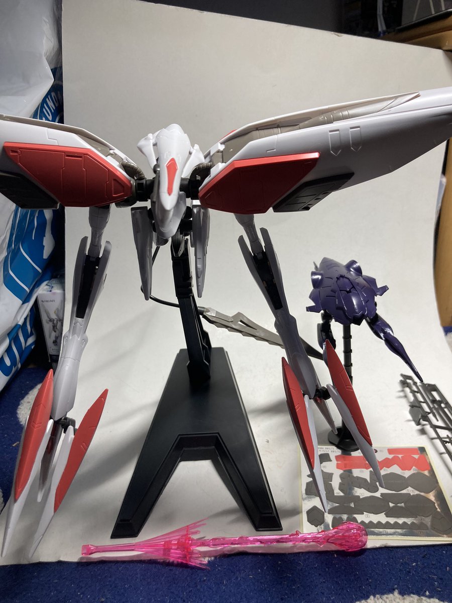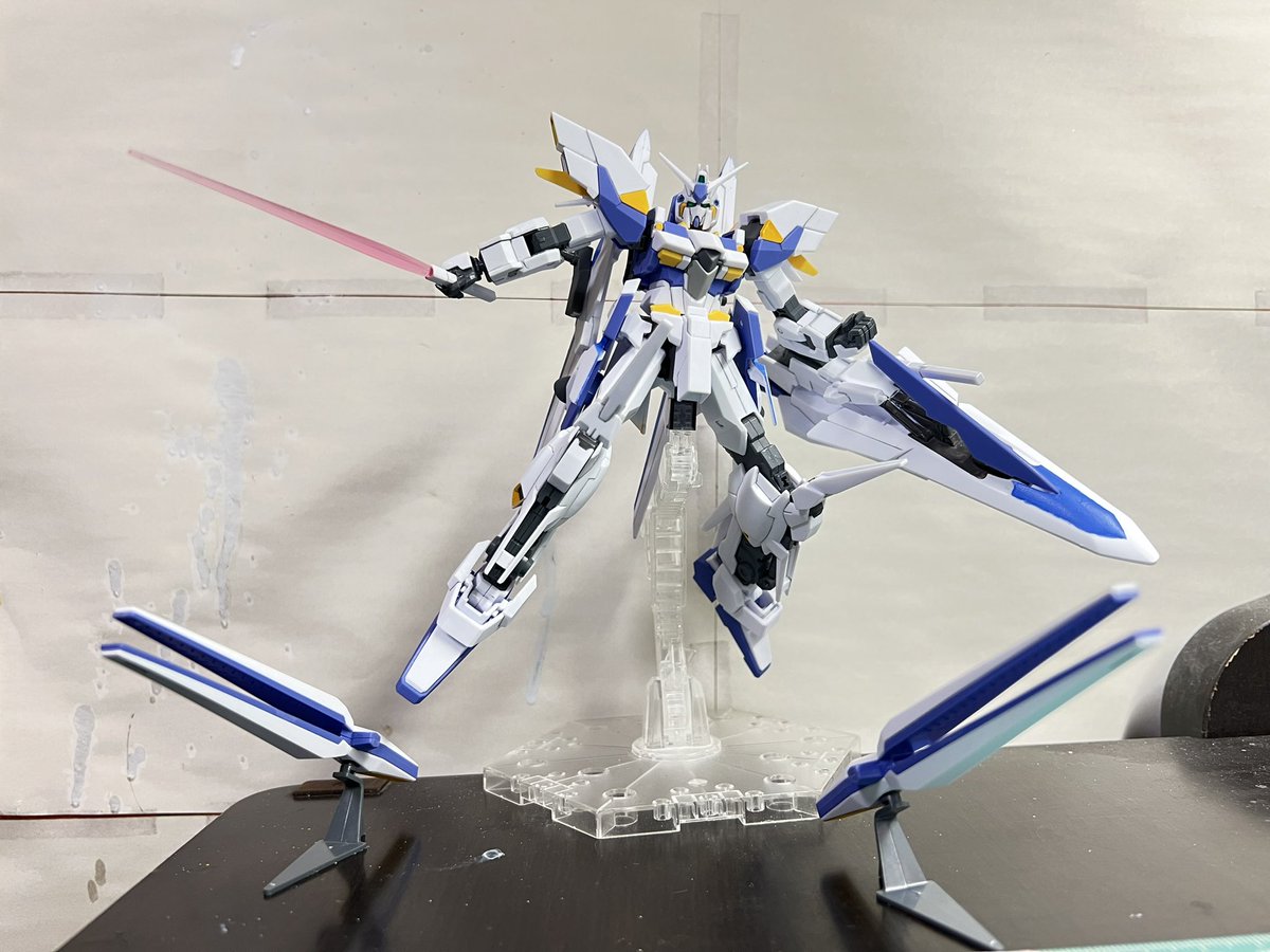 HGスターゲイザー完成!!! 関節の1部にボールジョイントとABSが使われていて既に緩くなりつつあります笑 スターゲイザーと言えばビームエフェクトですがしっかりとデフォルトで付属しています シールはホイルシール、ホログラムシールの2種あり発行版再現可能です #ガンプラ #ガンプラプチレビュー