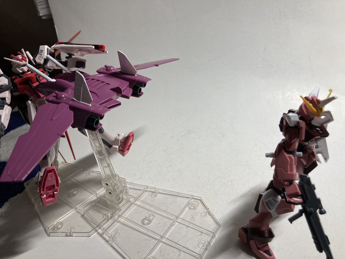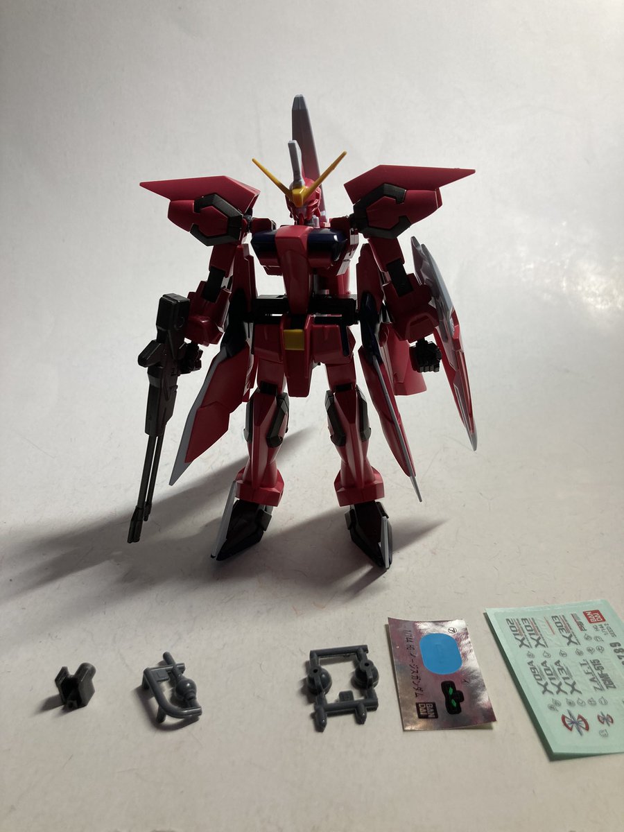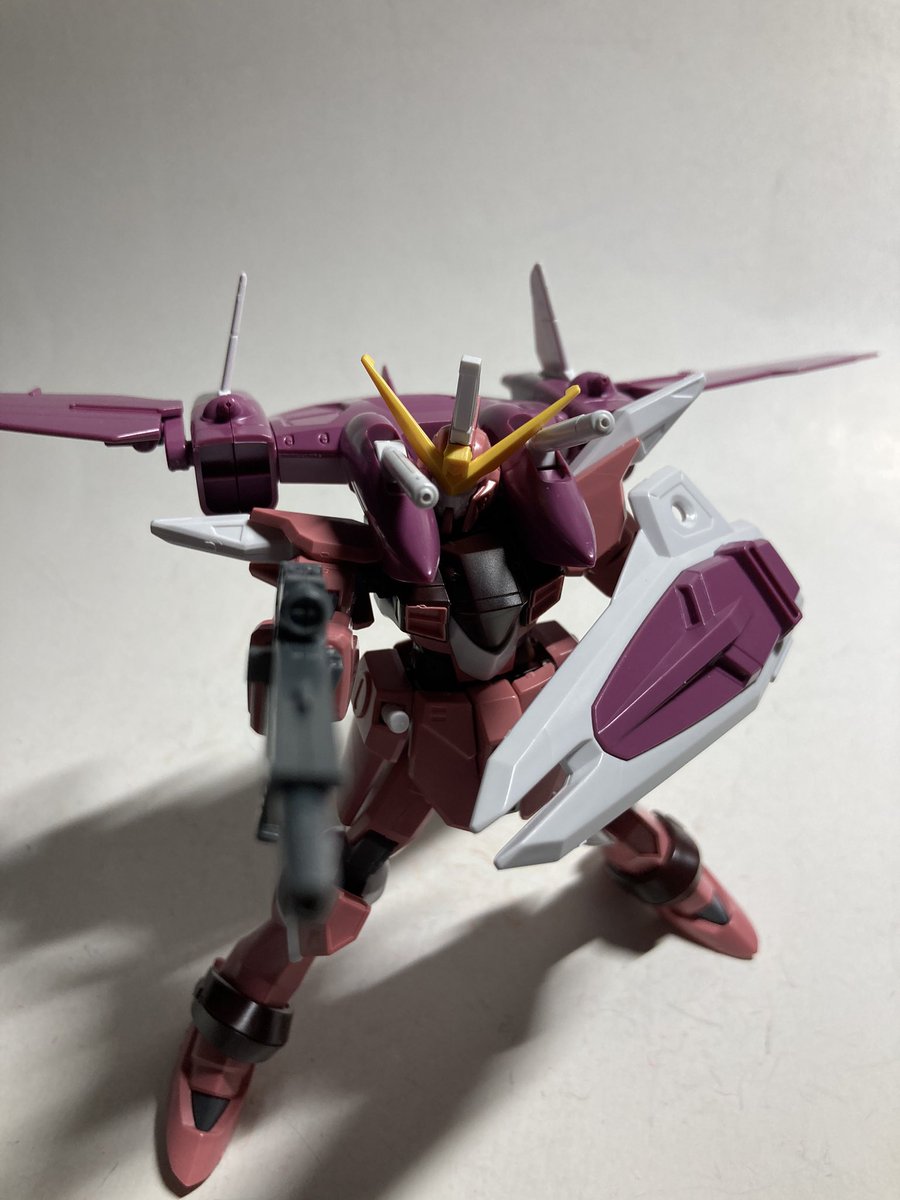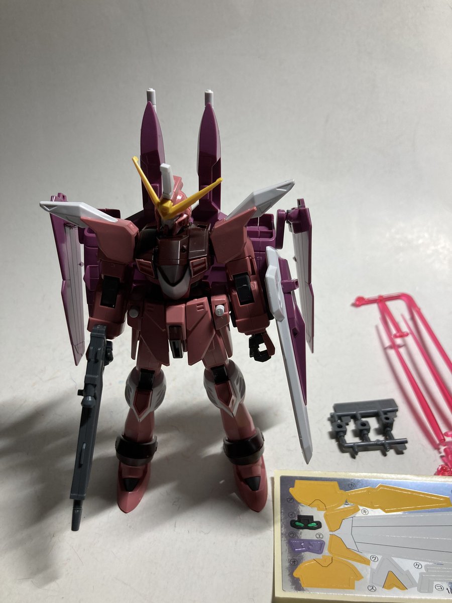 旧版HGジャスティス完成 シールは主にバックパックのパーツがメインとなって居ます 可動範囲は当時の必要最低限と言ったくらいですので飾ったりする分にはいい感じだと思います! 旧版フリーダムとの比較 #ガンプラ #ガンプラプチレビュー