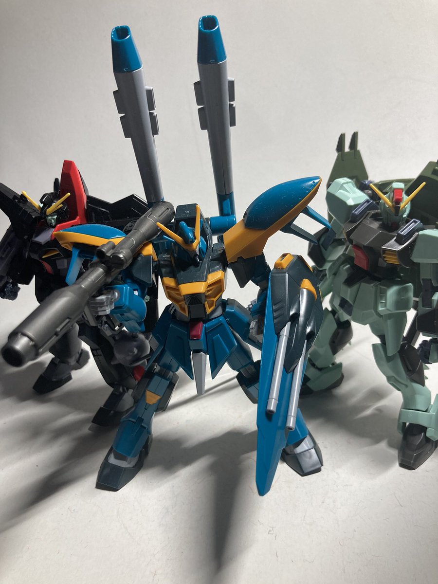 フォビドゥン完成 いつも使ってるカメラのバッテリーが壊れたのでスマホ撮影なので画質落ちてる可能性ありますご注意 関節の色はガンメタ風になってます 新規造形なので余剰パーツありません ようやく三馬鹿揃った #ガンプラ #ガンプラプチレビュー