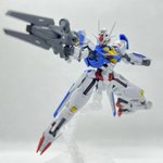 #ガンプラプチレビュー HGAC ガンダムアスクレプオス 完成です✨ 可動域は腕が80°しか曲がりませんが他は広いです❗️色分けはセンサー、オレンジ、グレー、ライトグレー、黒が足りないです。差し替えで高機動モードから近接戦モードにする事が出来ます❗️めちゃくちゃカッコイイです‼️