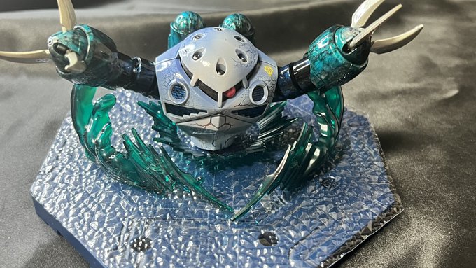 #ガンプラユニーク塗装コンペ #ジオン水泳部 #ガンプラ #ガンプラはどんな自由な発想で作ってもいいんだ #ガンプラの画像貼るとRTされると聞いて #カスタムペイントshaftD 夏らしく水々しい水滴塗装でペイントしたズゴックをどうぞ