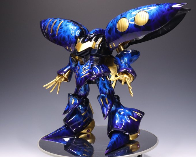 #ガンプラユニーク塗装コンペ ミスサザビーとシナンジュスタインを使用しました。実は狙っていた訳ではないのですが、ライトグレーとライトブルーが写真の雰囲気含めなんとも涼しげに仕上がりました。