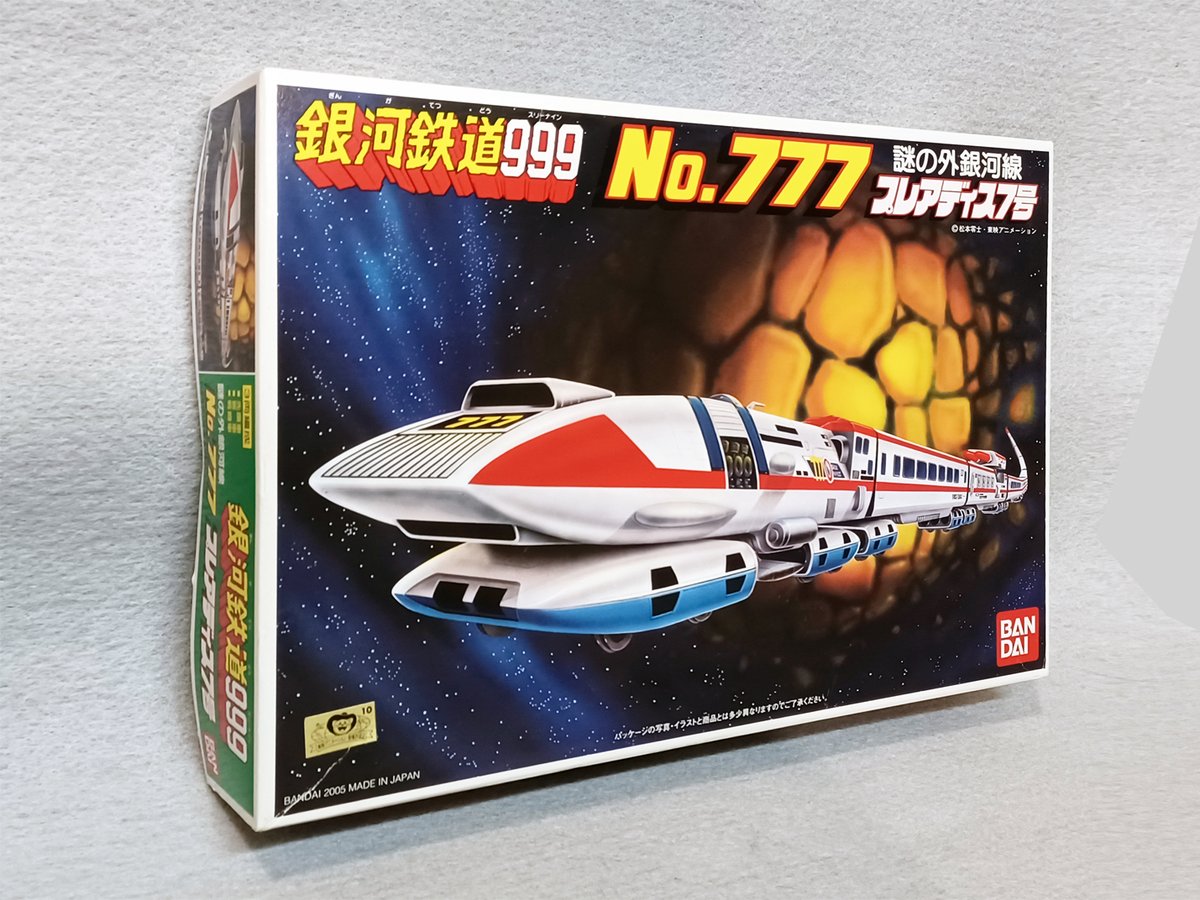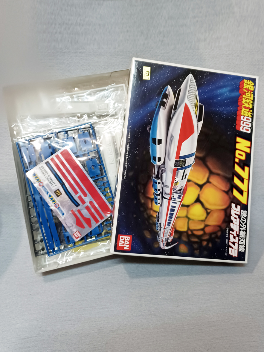 #ガンプラ以外のバンダイキット 以前にこのタグで完成品のロビーアラレをUPしたけれど未組み立てのパッケージでも参加OKみたいなのでTVアニメ『銀河鉄道999』のNo.777 謎の外銀河線プレアディス7号 を。 21世紀の今の目で見てもいいデザインです(断言)。 (直)