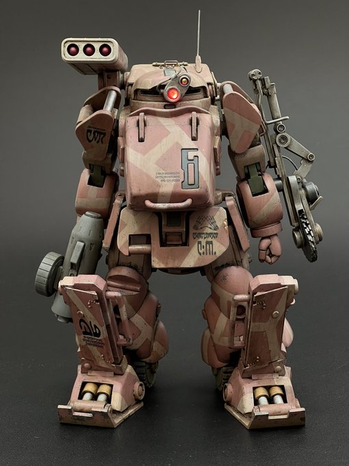 イングラム2号機 随分前に組み立てだけしたものを 改めて塗装しました 一部パーツ無かったりしてたので 激戦の後か整備中って脳内保管 #プラモデル #ガンプラ以外のバンダイキット #プラモデル好きと繋がりたい #パトレイバー