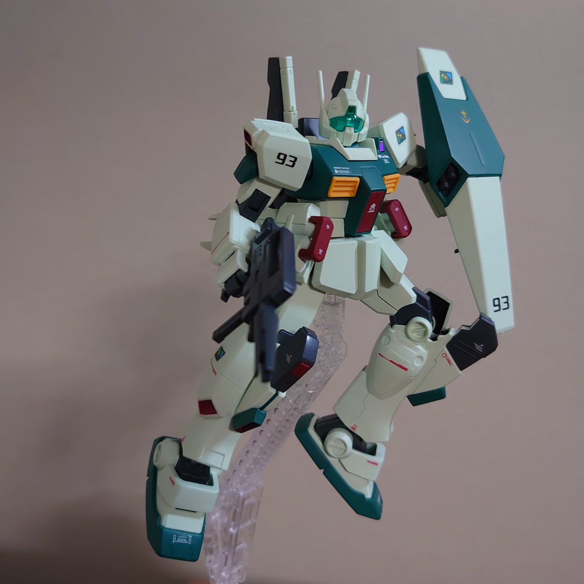 プラモデル始めて6ヶ月 49機目塗装40機目ミキシング3機目 🔶HGUC ジムIII(ロンド・ベル配備型)完成 水性ホビーカラー/筆塗り/全塗装 脚部スラスターは削除し 公式ビルダーズパーツを加工して接着 #ガンダム #ガンプラ好きな人と繋がりたい #ガンプラの画像貼るとRTされると聞いて #ガンプラ再販