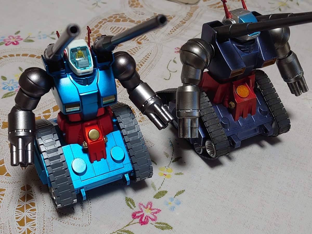 こんにちは✨ HGガンタンク、完成しました!!! 全塗装、キラメキ仕様です(笑) 以前作成した旧キットと並べてみました😊 #ガンプラ #ガンプラの画像を貼るとRTされると聞いて #ガンプラ好きな人たちと繋がりたい #ガンプラ再販 #ガンプラは自由だ #ガンプラの画像貼るとRTされると聞いて