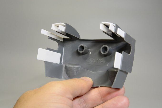 旧キット1/60シリーズの制作において、最も重要なのが接着強度の確保です その重量ゆえに、接着面が「ピキッ!」ってなっちゃうことがあるんですよね ここは裏側にプラ板を貼り付けておきましょう これで接着強度が抜群に上昇し、破損を大きく防ぐことができますよ♪ #ガンプラ凄技テクニック