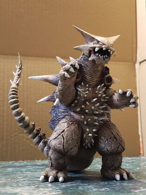 毒ガス怪獣ベノラ塗装編1日目!一通り色をいれて爪と目を部分塗装。明日艶消しコート後更にブラッシュアップ予定。今回は細かく写真撮りました。ガンダムマーカードライブラシとウェザリングカラー拭き取りで11工程+部分塗装で12工程でした。#ベノラ #電光超人グリッドマン #ガンプラ凄技テクニック twitter.com/i/web/status/1…