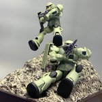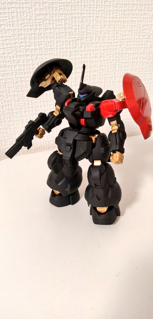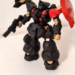 #ガンプラ凄技テクニック 今回は、ディランザ一般機を使用して簡単なカスタマイズしてみました。 拳は、オプションパーツ30mm12より流用。 バックパックは、ディランザ·ソルのもの。 塗装は、本体に黒と各部関節に金にしました。