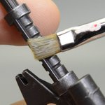 プラを本物の金属のように見せてくれる黒銀ドライブラシ 旧キットに施す場合、黒鉄色で下地を作り、一度ツヤを消したあと、タミヤエナメルのクロームシルバーでドライブラシしてみましょう まるで1981年にタイムスリップしたかのような仕上がりになりますよ♪ #ガンプラ #ガンプラ凄技テクニック