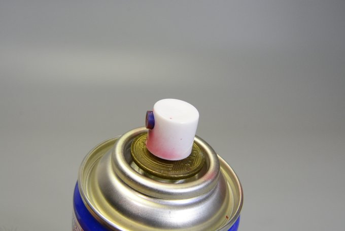 缶スプレー塗装のとき、どう頑張っても塗料がドバっと多く出すぎて上手く塗れない! そんなときの究極アイテムが5円玉です 缶とノズルの間に挟むだけで、塗料が吹き出る量が減り、圧倒的に塗りやすくなるのです 昔からの伝統的なテクニックですが、効果抜群ですよ♪ #ガンプラ凄技テクニック