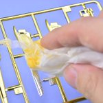ガンプラの金メッキはメッキ層の上にカラークリアーで着色されているので、Mr.カラー薄め液で拭き取ればシルバーに戻せちゃうんです♪ そのまま銀仕上げにするもよし、好きなクリアカラーで塗って自分だけのカラーメッキでしあげてもOKです😁 #ガンプラ凄技テクニック #ガンプラ初心者
