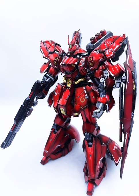 RGサザビー 完成しました✨ 立たせるとちょい後ろに傾きがちだけどかっこいいです☺️ 良い感じにギラギラ😎 #ガンプラ好きとつながりたい #ガンプラの画像を貼るとRTされると聞いて #ガンプラ完成