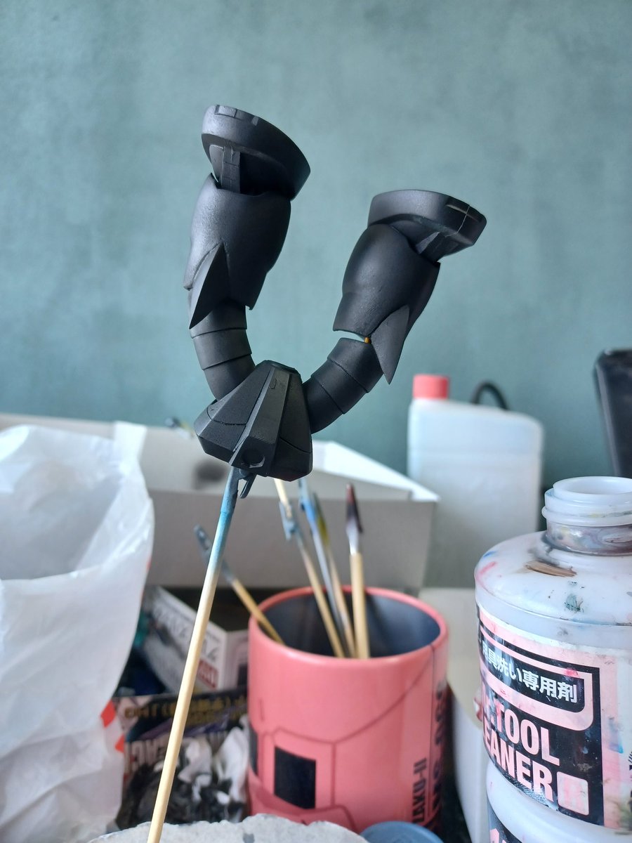 1/60ゲルググ作ってる方結構いらっしゃるので、自分もゲルググキャノンで〜と思い、厄祭(火事)後の我が家のマウンテンサイクルから発掘し、煤とホコリを洗い流したところで天日干し #ガンプラ #ガンプラの画像貼るとRTされると聞いて #ガンプラ旧キット