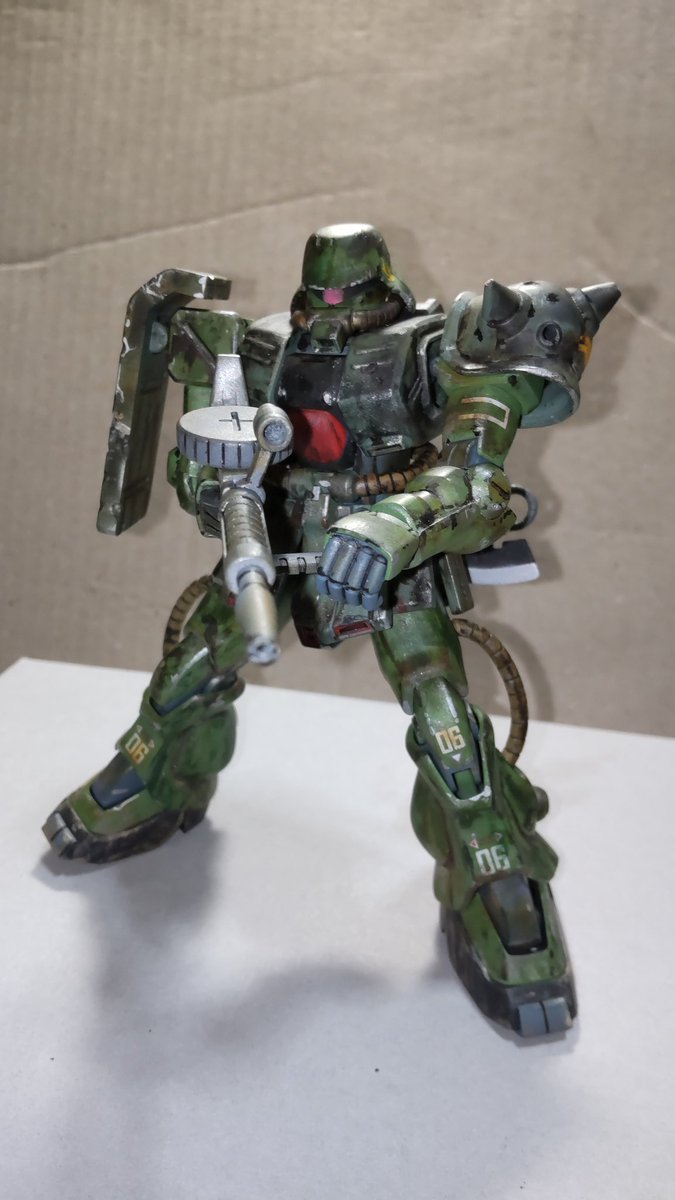 今日は買い物を午前中にすませ、午後から滞っていたズゴックさんの汚しをしてました♪ グフの時のような重厚感が出せず、苦戦してこの姿となりました。 いかがでしょう? もう少し濃い目(?)に汚したほうがいいかな? #ガンプラ #ガンプラの画像貼るとRTされると聞いて #ガンプラ汚し展覧会