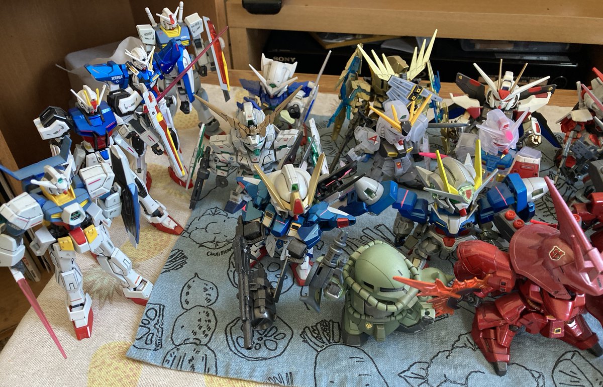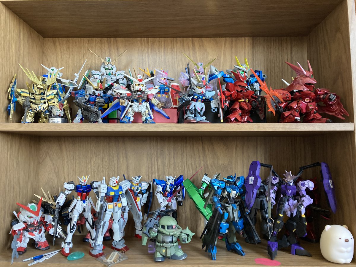 お早う御座います 本日は、GW最終日 何となく、ガンプラを整理整頓を してみました。 『ガンプラあるある』ですが カッコイイほど自立しないので 接近して並べるのに 苦労しました。😀 #ガンプラの画像を貼るとRTされると聞いて #ガンプラ好きと繋がりたい #ガンプラ転売 あ明日からガンバロー