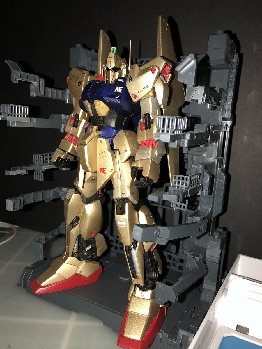 知人から頂いた百式のジャンク品のリペイントです。一部部品が足りて無いのもあるけど本体に影響なし😁メッキ落とし作業が大変でしたが、なんとか完成という事で…#ガンプラ好きと繋がりたい #ガンプラの画像を貼るとRTされると聞いて #ガンプラR作戦