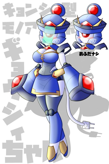キョンシー型モノアイロボ娘『ギョウシィ』ちゃん。 とあるパチモノ系企業が製作した偽物だ! わるい子になる予定がAI生成に失敗して滅茶苦茶良い子になった上におふだ型バイザーが無いと相手とまともに目も合わせられないあがり症の子になったぞ! #にせガンミィイラスト選手権 #ガンミィちゃんねる