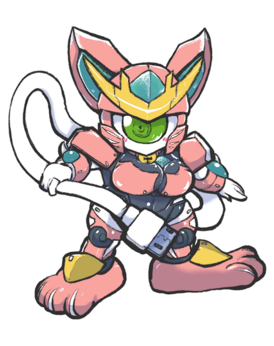 #にせガンミィイラスト選手権 #ガンミィちゃんねる 高機動型 ニセガンミィ 量産型の開発上で規格外の部品を再利用した少数量産機体。 両腕はオミット、半ばモノバイクと一体化している。作業アームがモノバイク左側に装備。 バイク前面にビームガン一門、上部ハッチに小型操縦メカが搭乗可能。
