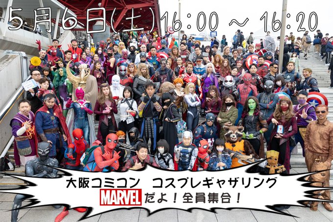 5月6日(土) 16:00~16:20 (2日目B-7枠) MARVELキャラで集合写真撮りましょう! ※写真は東京コミコン2022 みんな参加してね! 拡散してね! #OCC2023 #大阪コミコン2023 #コスプレギャザリング #マーベル #ガーディアンズが大好きだ
