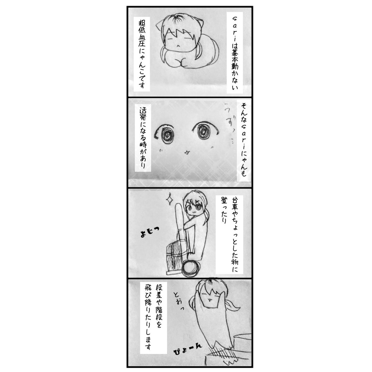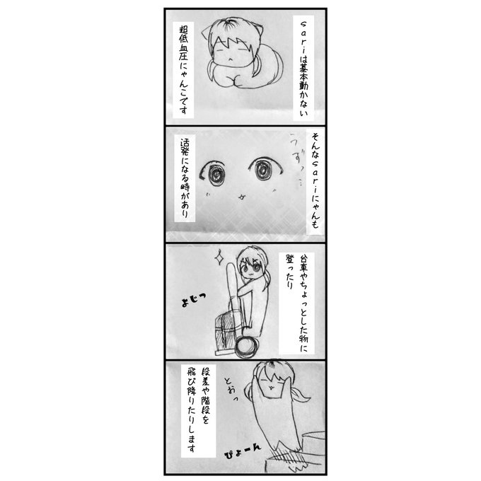 📖週刊少女ロック通信vol.49 メンバーの日常や出来事を四コマなどにしてお届けします🧚♂️📖 担当は😺sari🍃(@ss69sari)です! 猫ちゃんの謎行動。 #ガールズバンド #四コマ漫画 #漫画が読めるハッシュタグ #漫画の読めるハッシュタグ #猫好き #猫漫画