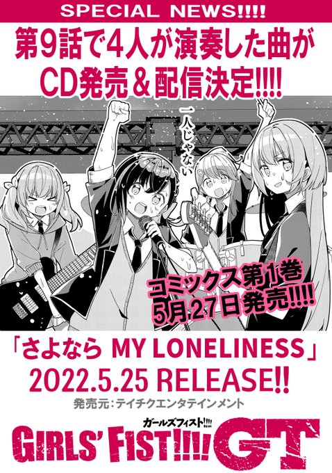 【特報】 『ガールズフィスト!!!! GT』第9話(下のツイート)作中で、パンクロック同好会の4人が演奏したオリジナル楽曲が、「さよなら MY LONELINESS」としてCD発売&配信リリース決定! ▼詳細はこちら! dengekionline.com/articles/12587… #ガールズフィスト!!!! GT twitter.com/dentsuma/statu…