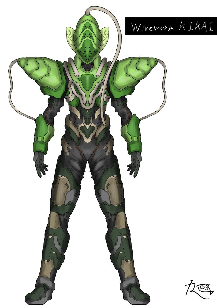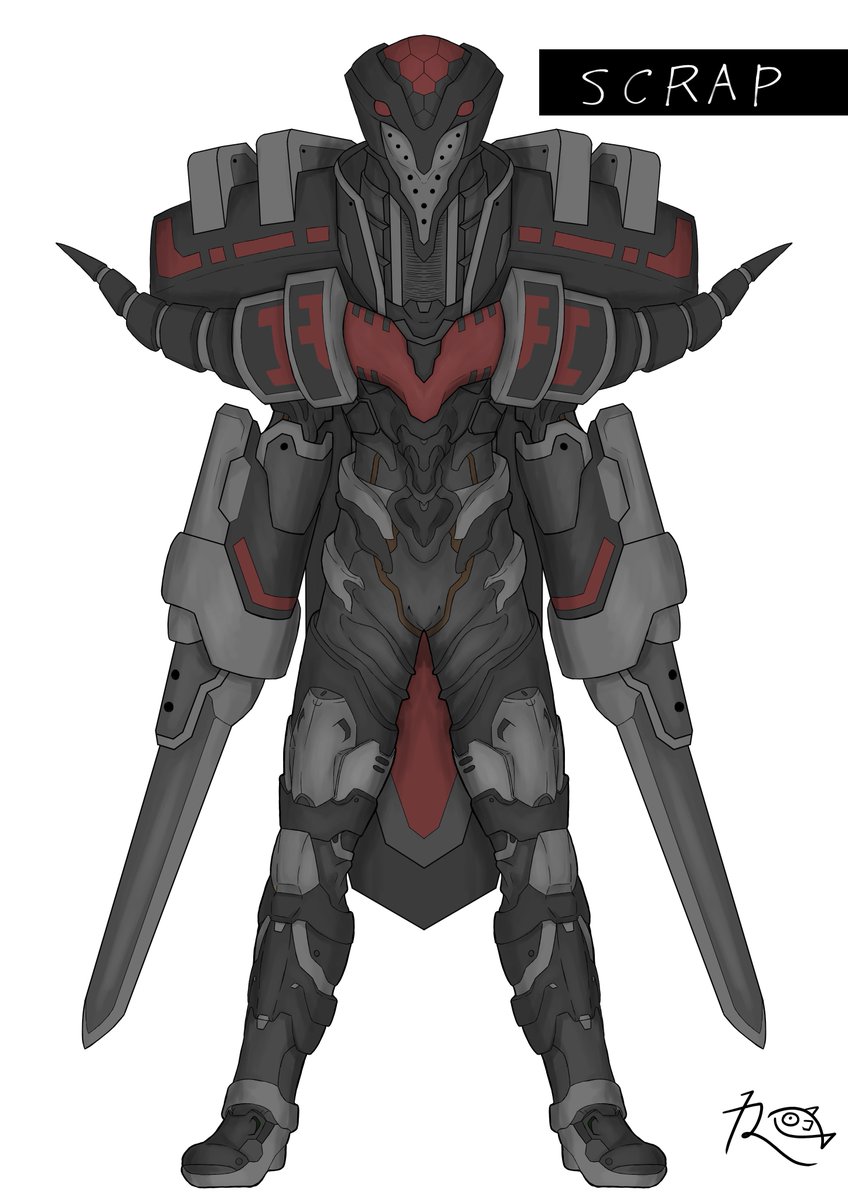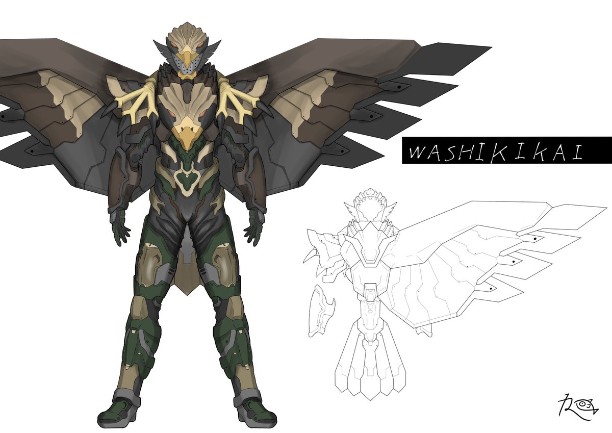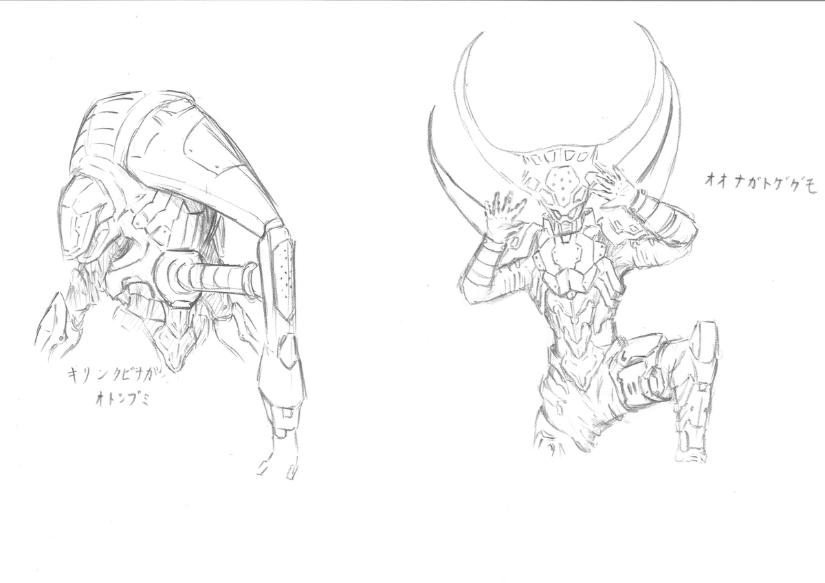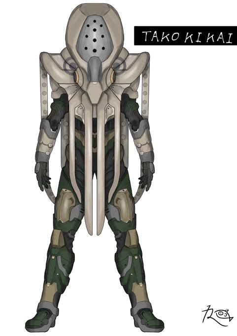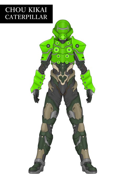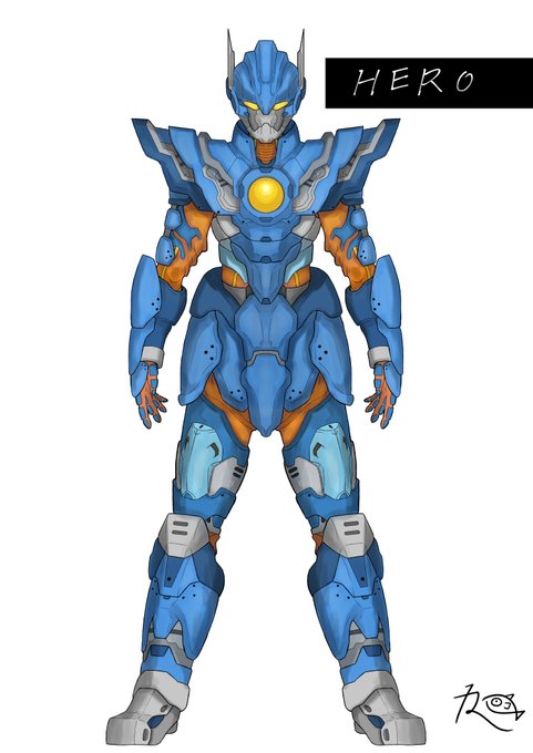 #オリジナルヒーロー ヒーロー(仮称) 今回はデザインコンセプトから語らせてくださいw 設定上、キカイ怪人たちとは腹違いの兄弟機と言うことなので、大元の素体は同じなのですが、過度なアーマーをつけることでシルエットの変化を図りました。 #キカイ怪人 ?