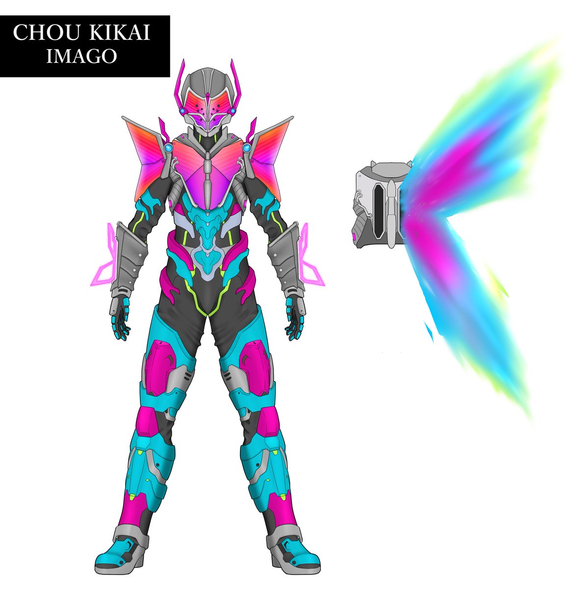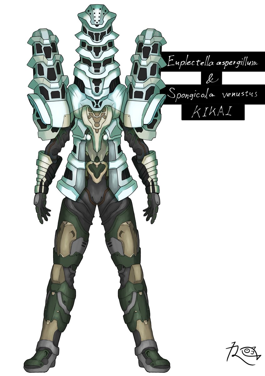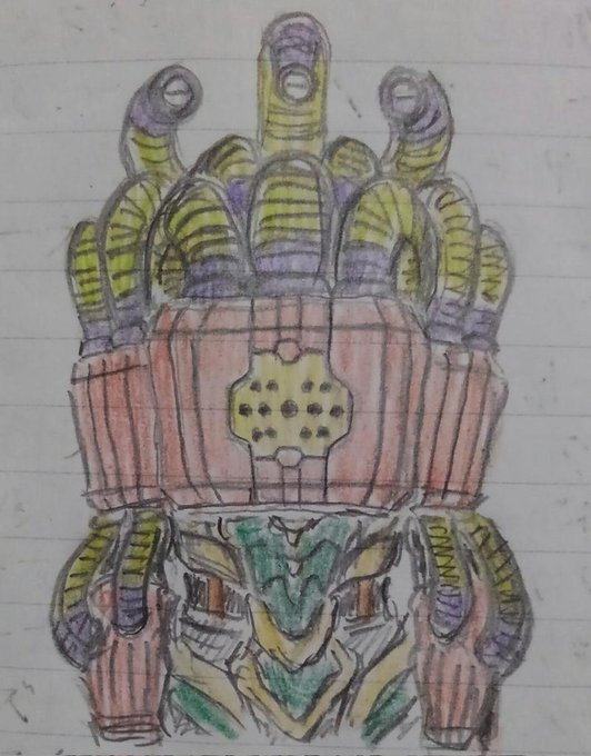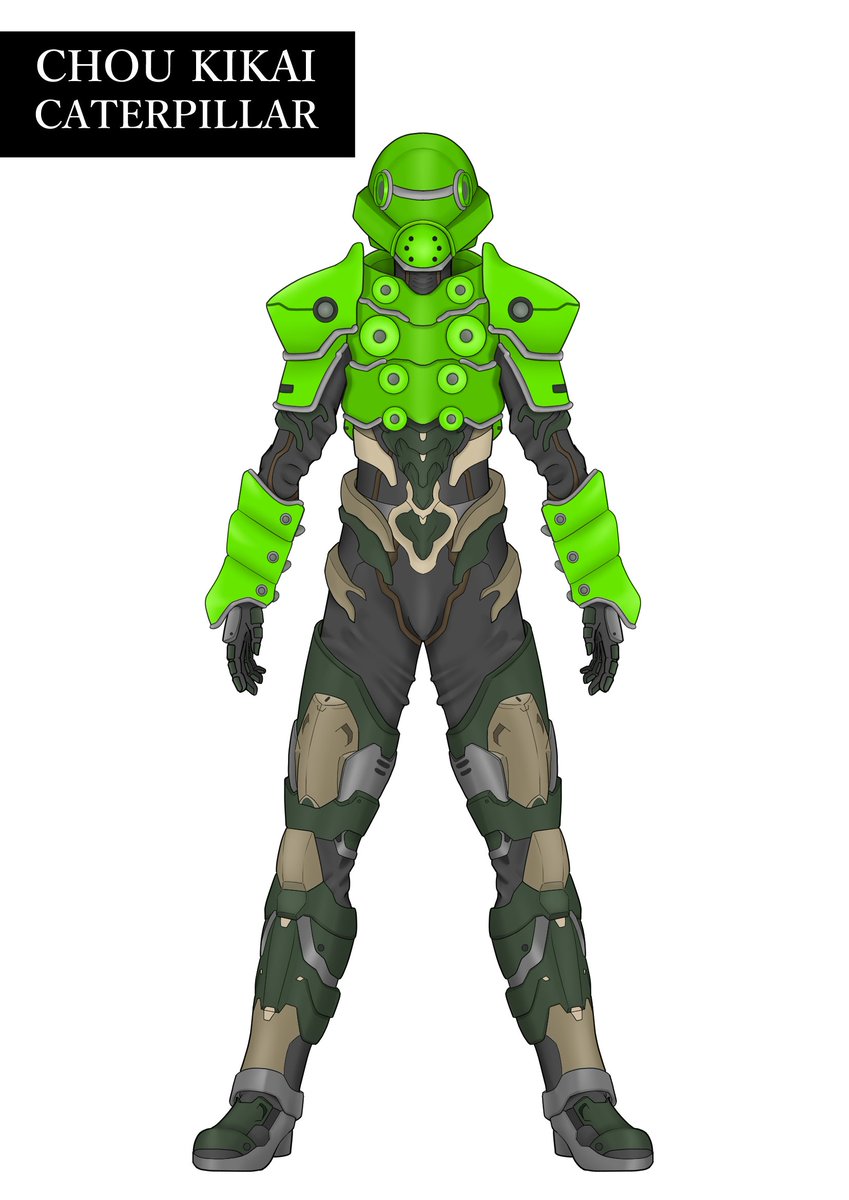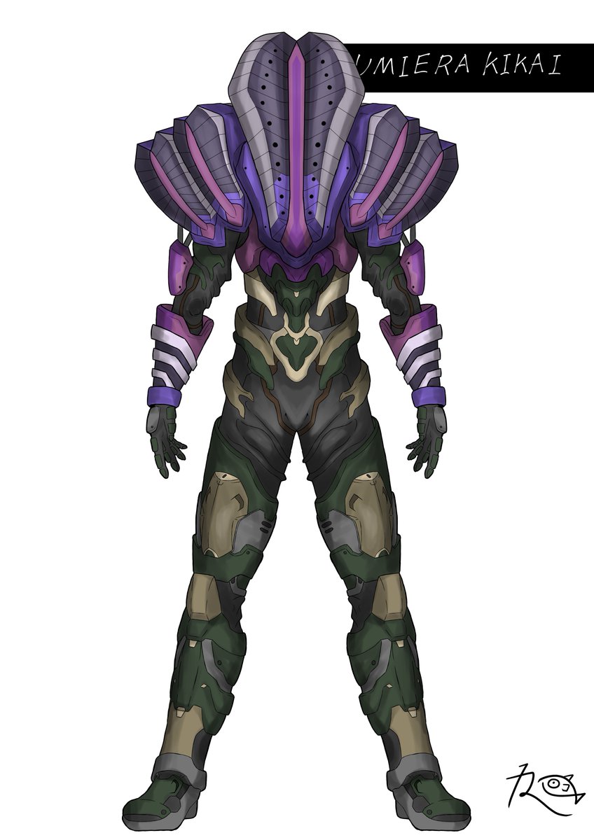 #オリジナルヒーロー ヒーロー(仮称) 今回はデザインコンセプトから語らせてくださいw 設定上、キカイ怪人たちとは腹違いの兄弟機と言うことなので、大元の素体は同じなのですが、過度なアーマーをつけることでシルエットの変化を図りました。 #キカイ怪人 ?