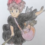#みなさん去年の今頃はどんな絵描いてましたか おはようございます2。去年の今日は #魔女の宅急便 の #キキ 絵を。かぼちゃパンツ💕丸見え(せ)で飛ぶのが魅力ですが、今リメイクされたらプリキュアみたいにスパッツに変更されちゃう?という妄想ラクガキでした😓 なおギリギリ平成キャラw