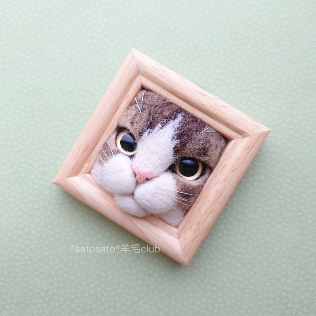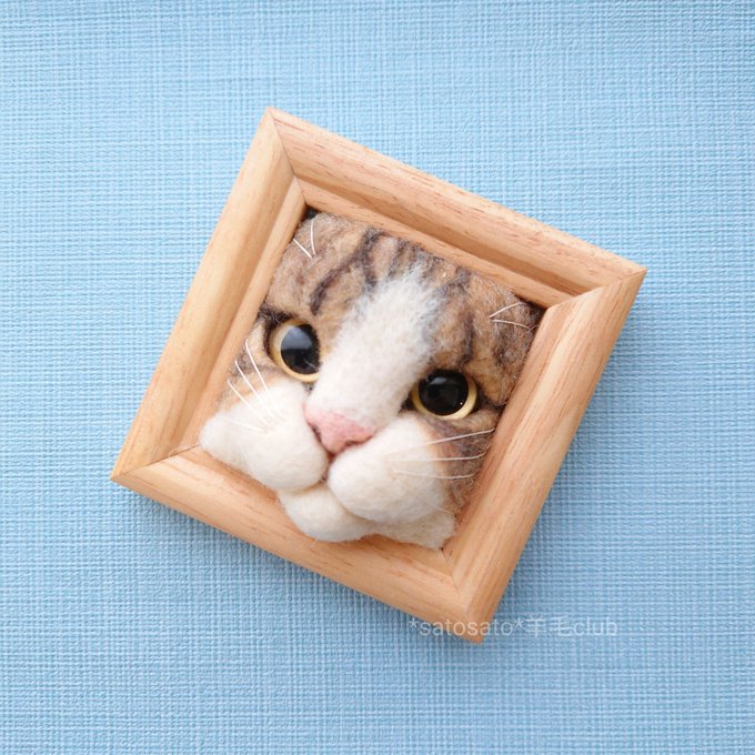 凛々しい #キジトラ白 ちゃん🐱 モデルがいると模様も単純なトラ模様とは違うので作ってて勉強になります😊 #羊毛フェルト #猫フレーム #キジ白 #猫好きさんと繋がりたい #猫の居る暮らし #名古屋 #クリマ #クリエイターズマーケット twitter.com/konacchi/sta…