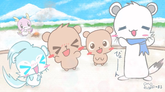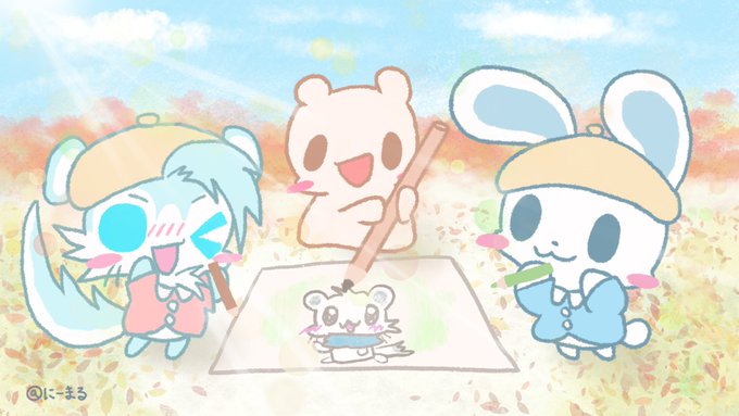 エゾモモ「おはようなのさ!今日は福之助くんと紅葉狩りに行くのさ٩(๑>∀<๑)۶ 寒くなってきたから皆も温かくして過ごしてなのさヾ(≧∇≦*)/」 #キタイイズナ塾コラボ企画 #福之助くん #な~マル #イラスト好きさんと繋がりたい