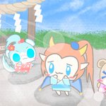 エゾモモ「こんばんは(*^▽^*)ノ 今日はハクバくん達と十和田湖へ紅葉狩りに行ってきたのさ! アレ…紅葉以外に興味津々な人が…」 #キタイイズナ塾コラボ企画 #ハクバくんとダイちゃん #な~マル #イラスト好きさんと繋がりたい