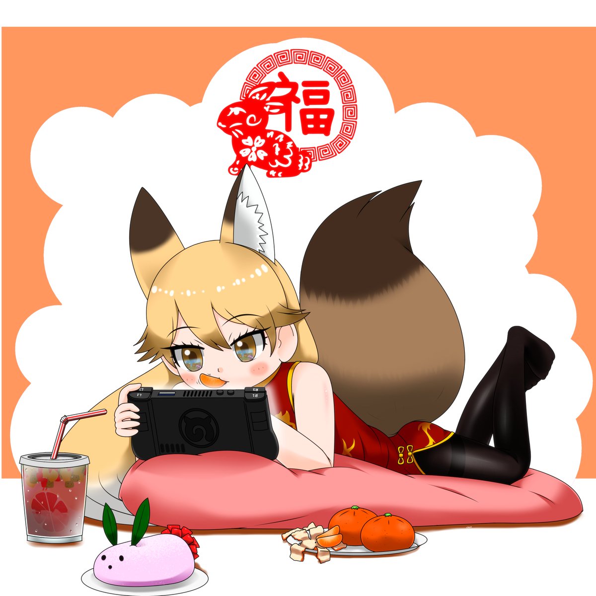 过节什么的。呆在家里玩游戏最好不过了🦊🎮🥤🟠 lazy new year festival gaming fox #けものフレンズ #kemonofriends #キタキツネ(けものフレンズ)