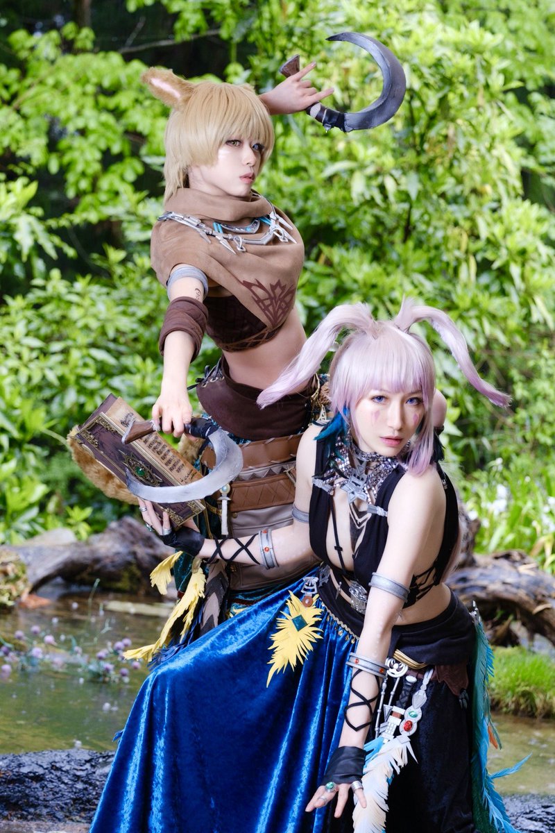 #キタンナ装備併せ #FF14コスプレ Miqo'te(DNC):@KOGECHOU × Viera(SMN):@raiyzfr1 遠距離組!! 撮影:@jishitsu 撮影地:@shiroyamastudio #FF14cosplay #ffxivcosplay
