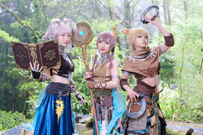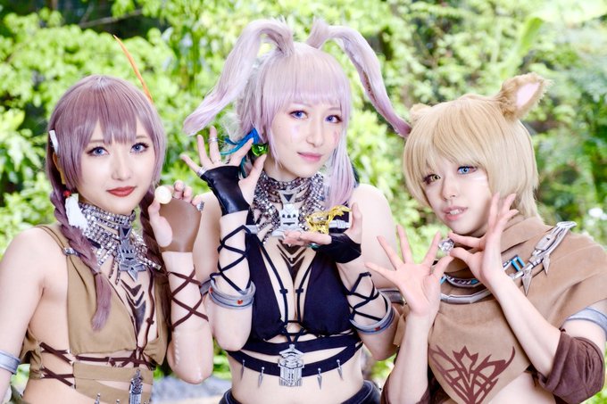 #キタンナ装備併せ #FF14コスプレ 見せつける×すごく喜ぶ みんなかわいいんよ!!! Hyuran(WHM):@dj_rika25 Miqo'te(DNC):@KOGECHOU Viera(SMN):@raiyzfr1 撮影:@jishitsu 撮影地:@shiroyamastudio #FF14cosplay #ffxivcosplay