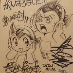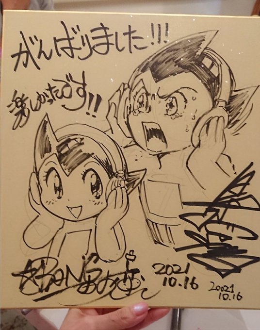 #キチムシ・アトムズ で島本一本木アトムカセットテープ購入した方にしか手前ツイート意味不明と思いましたが、スタジオにはこんな色紙を記念に置いてきました。朦朧とした島本和彦兄ィは凄い未来の日付を入れています(笑)SFです…通販、ぜひどうぞ~✨gallerysou.theshop.jp/categories/391… twitter.com/bang_ipp/statu…