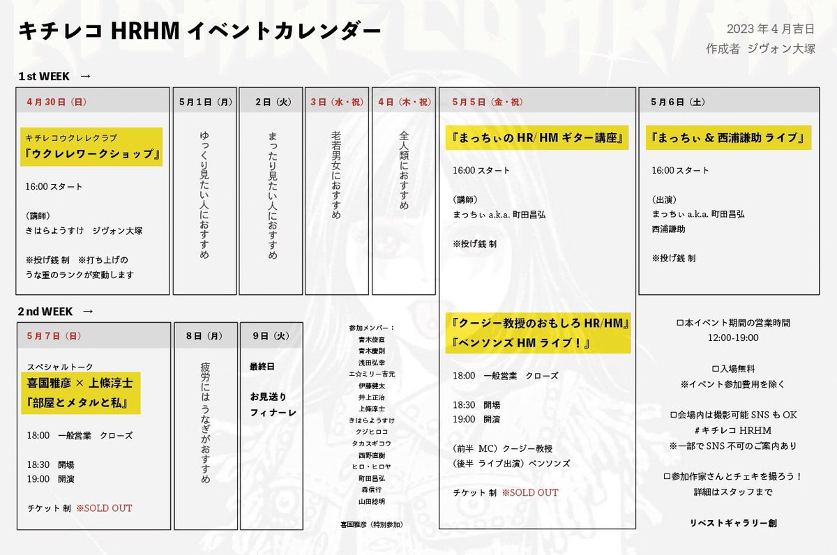 #キチレコHRHM #キチレコハードロックヘヴィメタル 4月28日(金)より 吉祥寺 リベストギャラリー創 青木俊直 浅田弘幸 いしかわじゅん エ☆ミリー吉元 伊藤健太 井上正治 上條淳士 きはらようすけ クジヒロコ タカスギコウ 西野直樹 ヒロ・ヒロヤ 町田昌弘 森信行 山田稔明 喜国雅彦(特別参加)