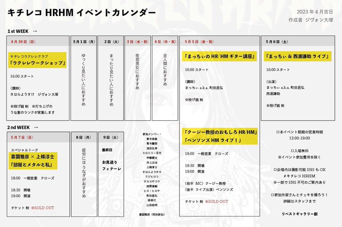 #キチレコHRHM 大感謝祭 5月14日(日曜日) 吉祥寺 スターパインズカフェ チケット発売中⚡️ 青木俊直 浅田弘幸 いしかわじゅん 井上正治 上條淳士 きはらようすけ 青木慶則 伊藤健太 クジヒロコ 町田昌弘 森信行 Sana 西野直樹 ジヴォン大塚 フローレンス福嶋 mandala.gr.jp/SPC/schedule/2…