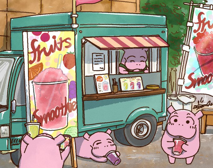 プチケーキのキッチンカーを絵葉書にしてみました。 甘〜い味で、甘い甘い恋をしてみよう! efude55.com #ケーキ #キッチンカー #イラスト #ポストカード #企業公式秋のフォロー祭 #秋の創作クラスタフォロー祭り