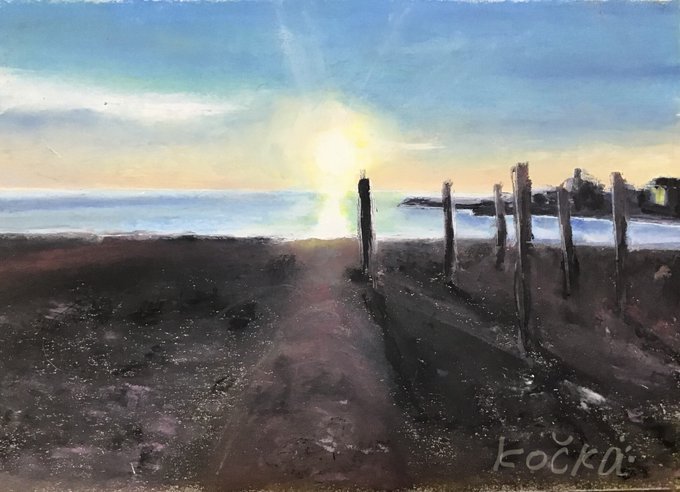 おはようございます。 昨日の絵が暗かったのでもう一度 『どこかで見てるあなたの海』 #キットパス #oilPastel #みんなで楽しむTwitter展覧会 #絵柄が好みって人にフォローされたい #art #illustration #artwork #ArtistOnTwitter #絵描きさんと繋がりたい #絵描きさんとつながりたい
