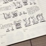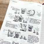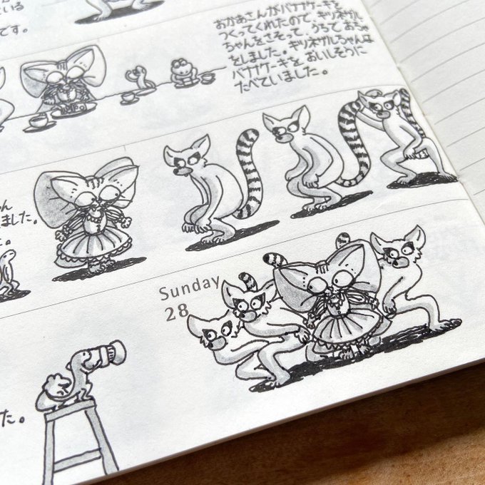 先週分の「ミーシャちゃんの日記」 ミーシャちゃんと キツネザルちゃん達 #キツネザル #猫 #猫イラスト #絵 #イラスト #絵描きさんと繋がりたい #イラスト好きな人と繋がりたい #モレスキン #手帳 #ミーシャちゃんの日記