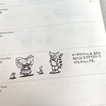 「ミーシャちゃんの日記」 ミーシャちゃんと オシャレなキツネザルちゃん 風邪でサボっていた分は諦めることにした… #キツネザル #ワオキツネザル #猫 #猫イラスト #絵 #イラスト #絵描きさんと繋がりたい #イラスト好きな人と繋がりたい #モレスキン #手帳 #ミーシャちゃんの日記