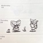 先週分の「ミーシャちゃんの日記」 ミーシャちゃんと キツネザルちゃん #キツネザル #猫 #猫イラスト #絵 #イラスト #絵描きさんと繋がりたい #イラスト好きな人と繋がりたい #モレスキン #手帳 #ミーシャちゃんの日記