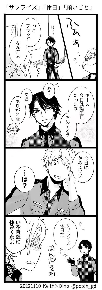 「ハッピーリスキーサプライズ!」1/3 誕生日おめでとう&事前企画ありがとうございます✨ お題 「サプライズ」「賭け」 賭け事が強い🍕が好きです きっちり任務を完遂、報告書作成など事後処理は🍣が気を利かせて後日でいいと言ってくれたので全力疾走して帰ってきた模様 #キデNightドロライ