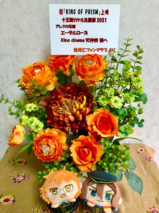 祝『KING OF PRISM』上映 十王院カケル生誕祭2021 祝花をお贈りしました🧡 一緒に祭壇に置いて頂きありがとうございます🧡 今後とも生誕祭上映をお願いします✨ 7/18法月仁さま生誕祭上映があるなら、青薔薇をお贈りします💙 #キノシネマ天神 #アレクの元嫁 twitter.com/kinocinema3/st…