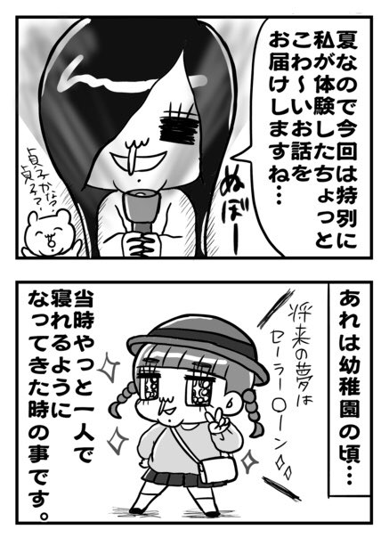 季節外れのコワイ話…👻 (1/2) 夏に描いたやつだけど… よかったら… 読んで…ね……💀 #キミが笑えばそれでイイ #エッセイ漫画 #ホラー #漫画が読めるハッシュタグ #イラスト #illustration