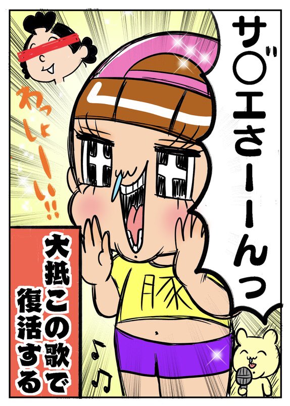 落ち込んだ時、 この曲大声で歌うと 復活モードに入る私です🙋♀️ ちなみに火曜日に やっていたサザエさんのEDね。 若者たちよ… 昔は火曜日にも サザエさんやってたんやで…🌝 #キミが笑えばそれでイイ #エッセイ漫画 #漫画が読めるハッシュタグ #イラスト #illustration