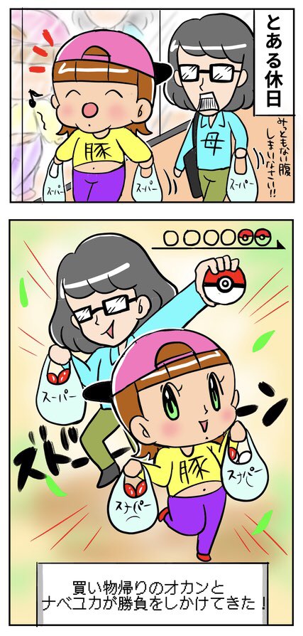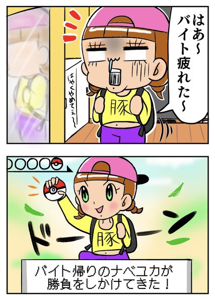 「○○のナベユカが 勝負をしかけてきた!」 イラストレーター、 半分引きこもり、マヨラー… 意外となんでもイケる😏 ダイパ楽しいなえへへ🥳💖 #キミが笑えばそれでイイ #エッセイ漫画 #漫画が読めるハッシュタグ #イラスト #illustration #ポケモンBDSP #ダイパリメイク